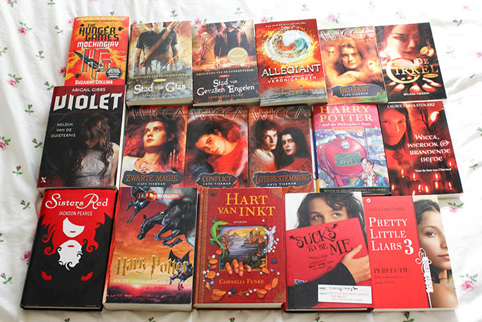 Tadaaa! En dit zijn al mijn rode/oranje boeken! Ik had eigenlijk verwacht dat het er meer zouden zijn want rood is best een veel voorkomende kleur. Als ik zo eens in mijn boekenkast kijk, denk ik dat bij mij zwart de meest voorkomende kleur is en blauw volgt snel daarna!